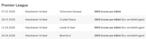 Nå har du muligheten til å se Liverpool, Manchester City, Manchester United og Tottenham spille. På grunn av stor etterspørsel er det for øyeblikket kun disse kampene som er tilgjengelige.